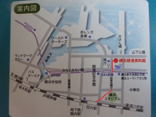 地図の赤い丸印のところが「横浜開港資料館」。